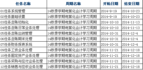 各位学员,2014年秋季会计电算化考核任务安排已出来,请有需要重修的同学到考试中心或辅导员处报名,及时到校完成考核任务。本学期学校安排每周四晚在综合楼401上课。