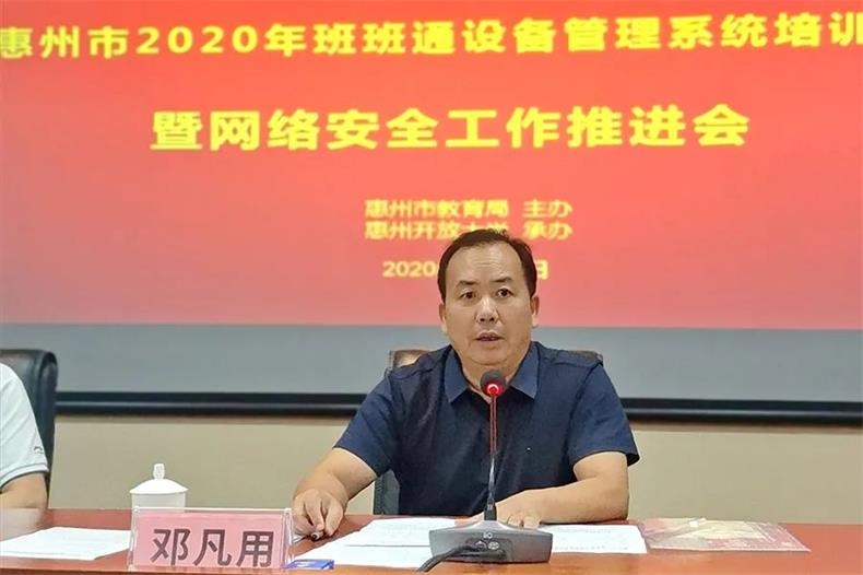 9月17-18日,由惠州市教育局主办、乐竞体育平台官方网站承办的惠州市2020年班班通设备管理系统培训班暨网络安全工作推进会在乐竞体育平台官方网站多功能报告厅顺利举行。来自教育系统网络安全管理相关人员和全市中小学校的近600名信息技术骨干教师参加了此次培训。惠州市教育局副局长邓凡用、乐竞体育平台官方网站副校长吴希东和市教育局电教站负责人梁惠专出席了开班仪式。