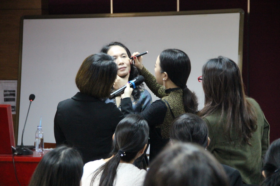 此次培训,市社区教育指导服务中心特邀完美人生女子学院院长、高级形象管理顾问温洁老师前来授课。温老师从皮肤清理、护肤品的选择和使用顺序进行了皮肤保养的专业讲解和分享,给大家详细讲解如何根据肤色、脸型、衣服色彩选择冷暖色系化妆品,“你这个皮肤比较暗,先涂点粉底,遮住一些斑,然后用亚光口红。”……温老师一个接一个分析每个人的肤质和搭配技巧。通过具体演示,教会大家如何通过打粉底来修饰脸型、提高鼻梁、掩饰黑眼圈、淡化法令纹等一系列的化妆技巧。