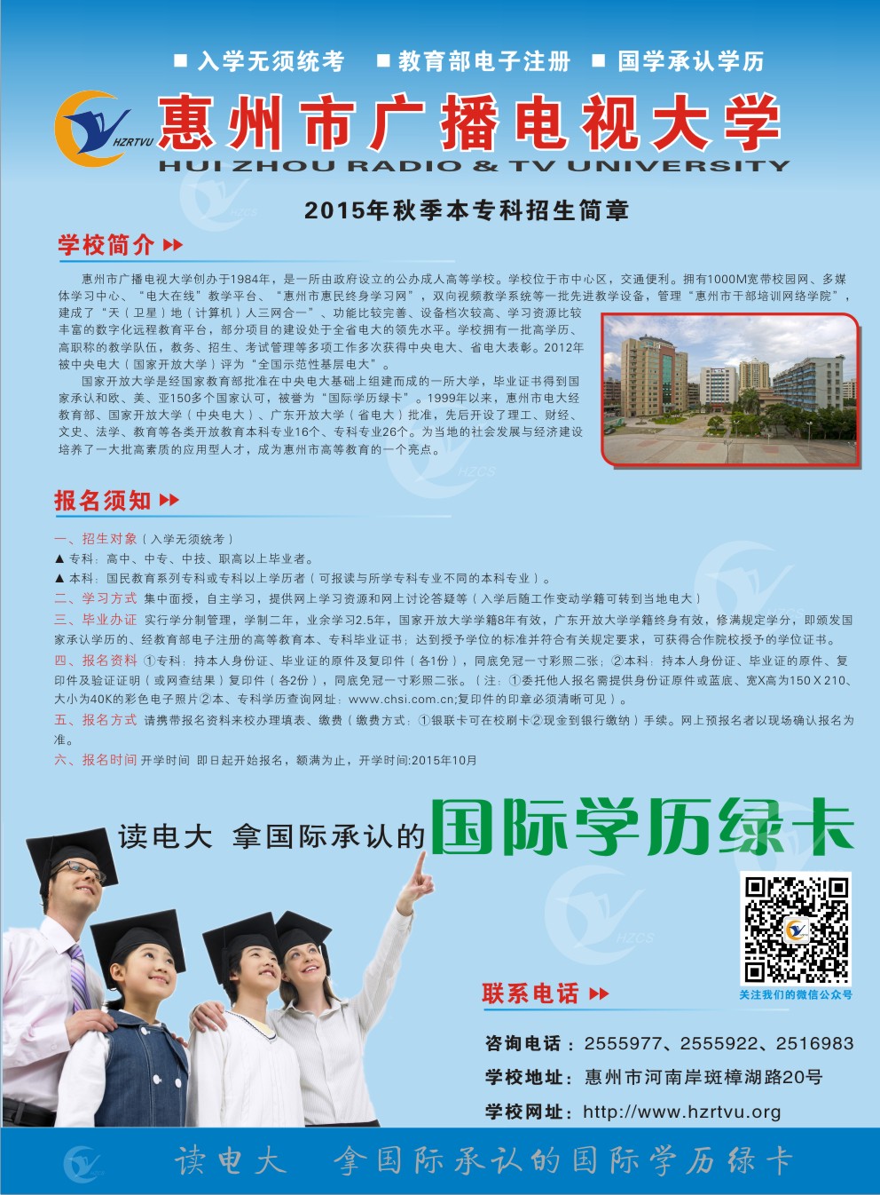 上一篇:惠州市广播电视大学2015年标准化工程(本科)专业招生简章