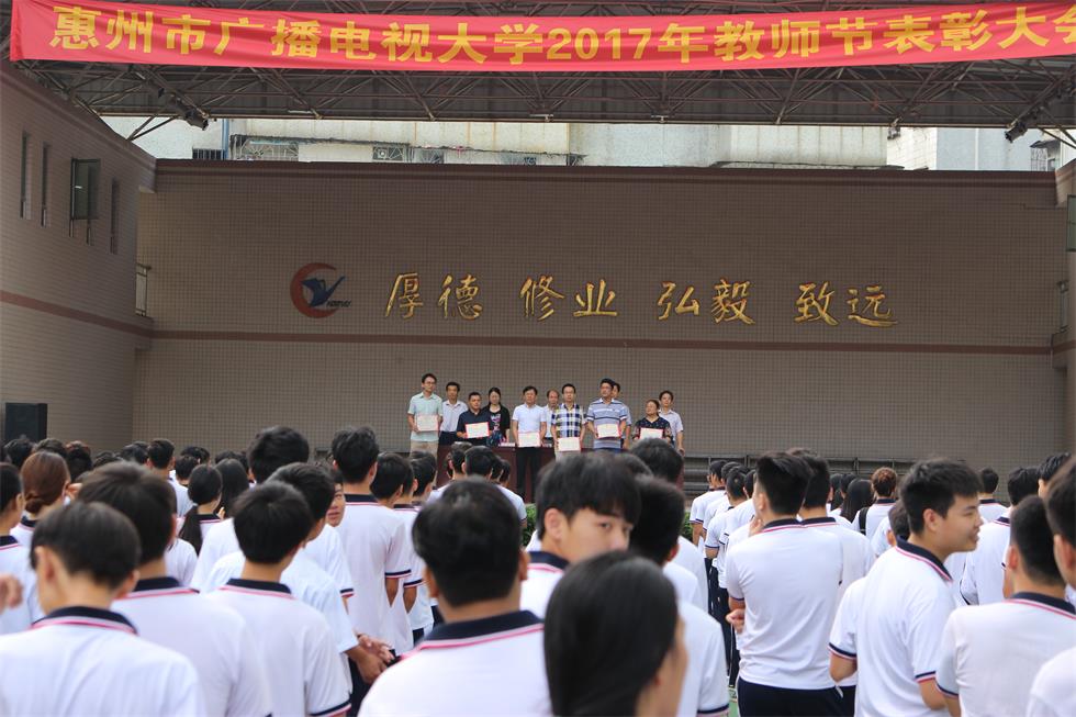 9月11日,惠州市电大(建筑学校)在学校文体广场举行2017年教师节表彰大会。学校党委书记、校长温金龙等校领导及全校师生参加大会。大会由副校长陈玲明主持。