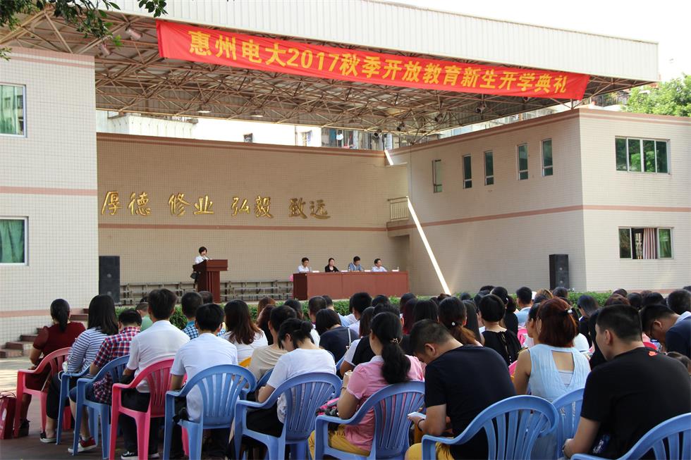 9月23日,惠州市广播电视大学2017秋开放教育新生开学典礼在学校文体中心举行。学校领导、班主任以及国家开放大学、广东开放大学本、专科新生800多人参加了开学典礼及有关活动。典礼由学校党委副书记、副校长杨祖武主持。