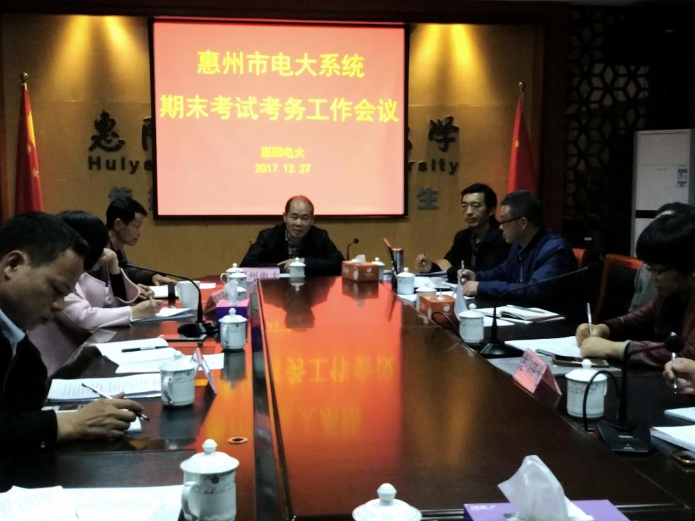 2017年12月27日下午,惠州市电大系统期末考试考务工作会议在惠阳开放大学三楼会议室召开。会议由市电大副校长李建国主持,市电大党委书记、校长温金龙、各县(区)电大校长、分管考试工作的副校长及全体考务人员参加了会议。