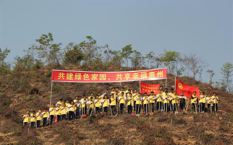 3月12日是植树节,当天上午,惠州市建筑学校教师代表、学生志愿者共48人到万林湖激流坑水库山地参加“造林绿化 建设绿色化现代山水城市”全民义务植树公益活动。本次植树活动有来自武警、消防、公安、边防官兵以及机关干部、群众、志愿者、学生共800多人参加。