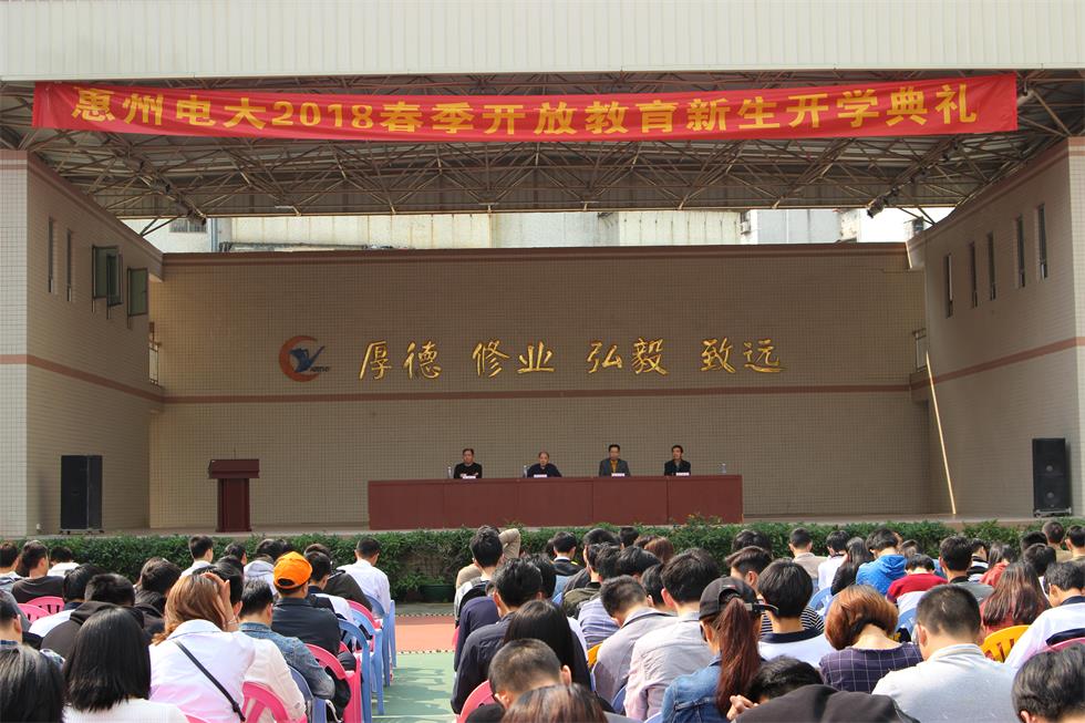 3月24日上午,惠州市广播电视大学在文体中心举行2018年春季开放教育新生开学典礼。党委书记、校长温金龙,党委副书记、副校长、纪委书记杨祖武,副校长李建国、张紫良,各班班主任以及开放教育本、专科500多名新生参加开学典礼及有关活动。开学典礼由李建国副校长主持。