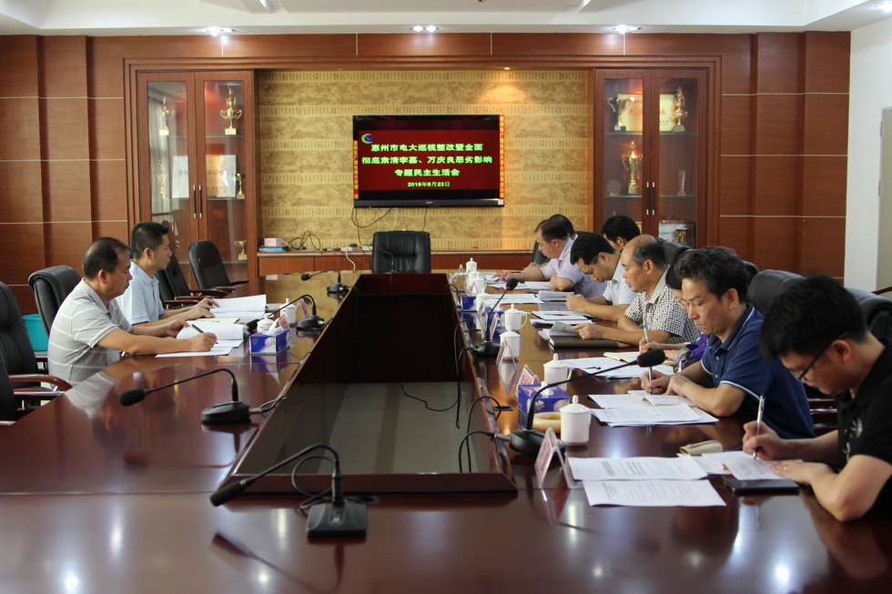 8月23日上午,惠州市电大党委召开巡视整改暨全面彻底肃清李嘉、万庆良恶劣影响专题民主生活会。市教育局党组成员、副局长邓凡用,市教育考试中心主任卢春浓等同志到会指导,学校领导班子成员参加了会议。会议由学校党委书记、校长温金龙同志主持。