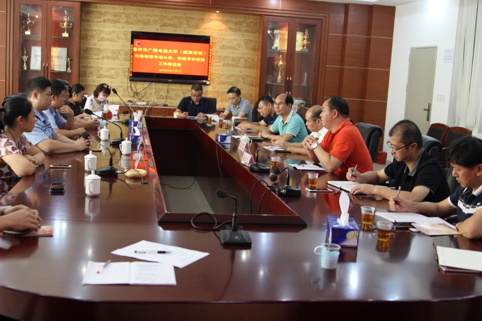 9月21日,惠州市电大(建筑学校)在学校11楼会议室召开扫黑除恶专项斗争、共建平安校园工作推进会,参加会议的有学校主要领导、学校各部门负责人、各部门安全联络员和河南岸派出所、河南岸街道综治办、斑樟湖居委会等有关领导共30多人,会议由学校扫黑除恶专项斗争工作领导小组办公室杜剑山同志主持。