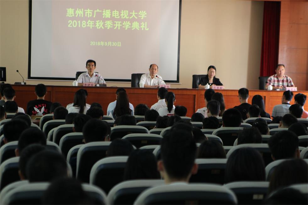 9月30日,惠州电大在12楼多功能会议厅举行2018年秋季开放教育新生开学典礼。党委书记、校长温金龙,副校长范慧新、李建国、张紫良,各班班主任和开放教育本、专科新生参加开学典礼及有关活动。