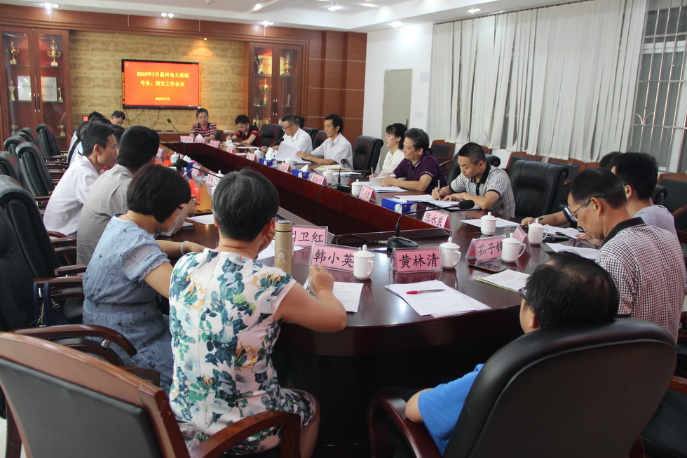 7月1日,惠州市电大(开大)系统2019春期末考试考务工作会议暨2019秋季招生工作会议在惠州电大召开。博罗、惠东、惠阳、龙门4所县区开大校长、分管教学副校长、教务考务负责人共23人参加了会议。7月3日,惠州电大在12楼多功能会议厅举行2019年春季开放教育期末考试培训会。市电大全体教职工参加了会议。会议传达了全省招生工作会议精神,总结了2019年1月考试工作,布署了2019年7月开放教育考试考务以及招生工作。 惠州电大党委书记、校长张海燕对全市电大(开大)系统招生、考试工作提出三点要求,一是认清形势,提高认识。要深刻认识粤港澳大湾区建设、开放大学更名转型、事业单位体制改革等发展态势,以习近平新时代中国特色社会主义思想为指导,把握机遇,勇担责任,树立责任意识、细节意识、危机意识,认真履行职责,抓好考务招生工作;二是规范管理,提高质量。要肩负起安全责任,将考风考纪建设、考试管理、学生服务工作落实落细,正确处理考纪、规模、质量和效益的关系,确保考点考试安全、顺利。三是开拓挖潜,攻坚克难。沉着应对严峻的招生形势,创新思路,要紧贴市场需求,争取有关部门支持,主动出击,开拓项目,扩大宣传,塑造品牌,实现共赢,确保完成招生目标任务,推动电大教育事业发展。
