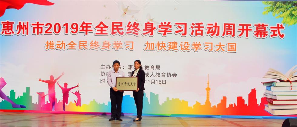 11月16日,在惠州市2019年全民终身学习活动周开幕之际,惠州电大获授“乐竞体育平台官方网站”牌匾。