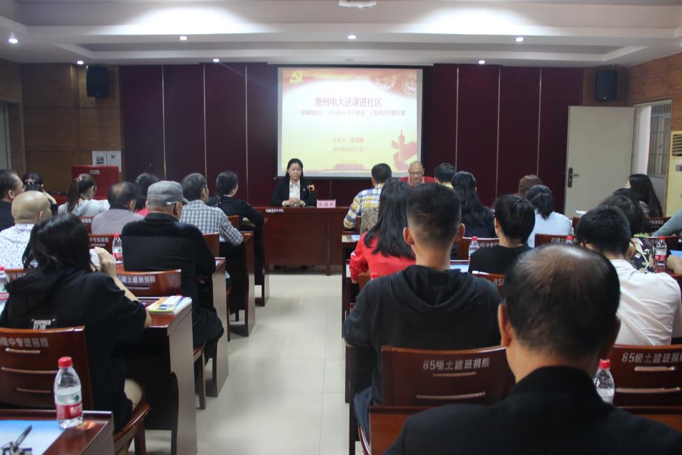 11月17日,惠州电大送党课进斑樟湖社区,为党员讲授“不忘初心 牢记使命”主题教育专题党课。本次党课由校党委书记、校长、副教授张海燕主讲,副校长吴希东主持,50余名社区党员参加了本次党课。