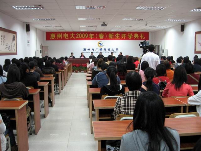 3月15日,惠州电大隆重举行2009(春季)新生开学典礼,学校领导、老师和800多名本、专科新学员参加了典礼。典礼由陈更海副校长主持。