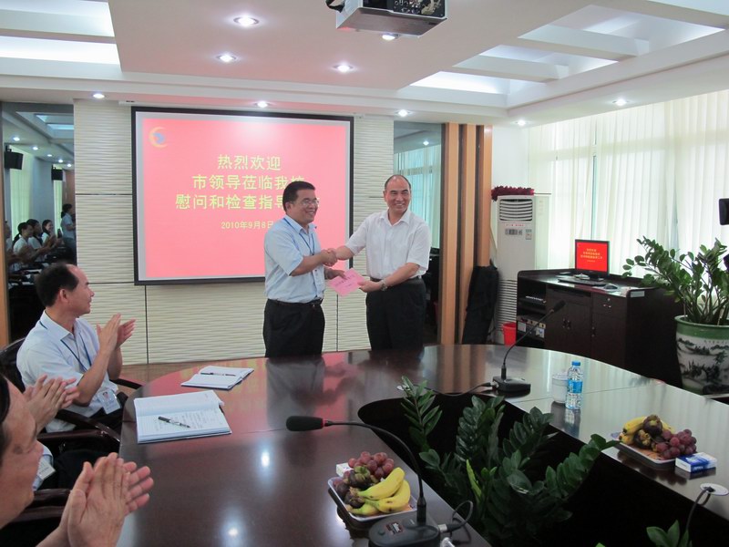 吴汉朋校长代表学校全体教职工对陈仕其副书记等领导莅临我校慰问表示衷心感谢,并汇报了学校的办学情况、学校发展中遇到的困难及今后的工作设想。(办公室)