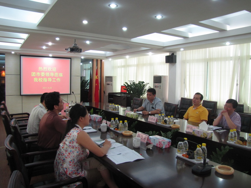 在“五四”青年节即将来临之际,共青团惠州市委书记韩维斌一行三人于4月28日上午莅临我校进行调研和节日慰问,陈玲明副校长代表学校对团市委领导的到来表示了热烈的欢迎。