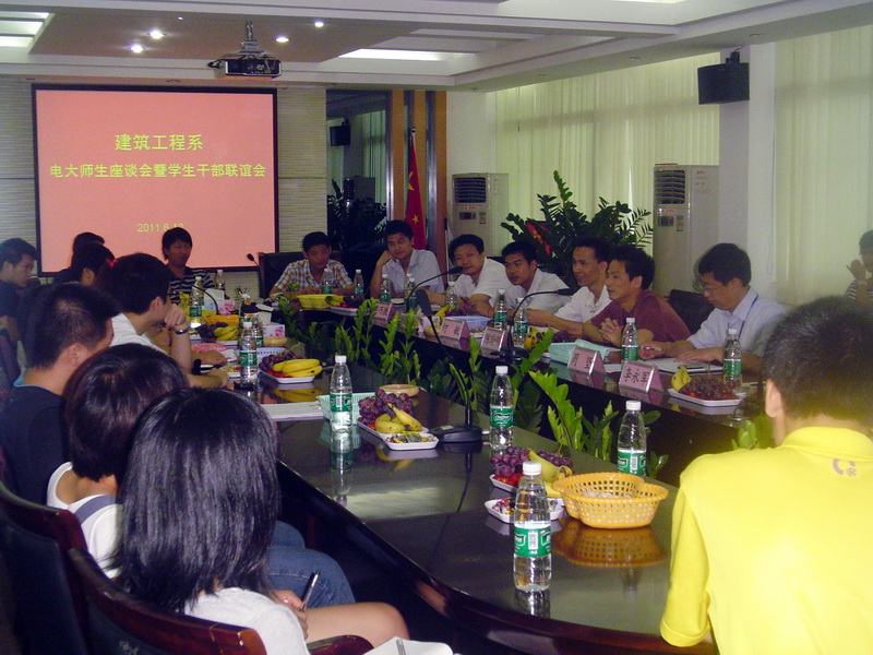 为进一步强化电大学生管理, 6月12日上午,建筑工程系在教学楼5楼会议室召开电大师生座谈会暨学生干部联谊会。副校长陈玲明、系主任周坚等老师和业余班班干部约30人参加了会议。会议由系副主