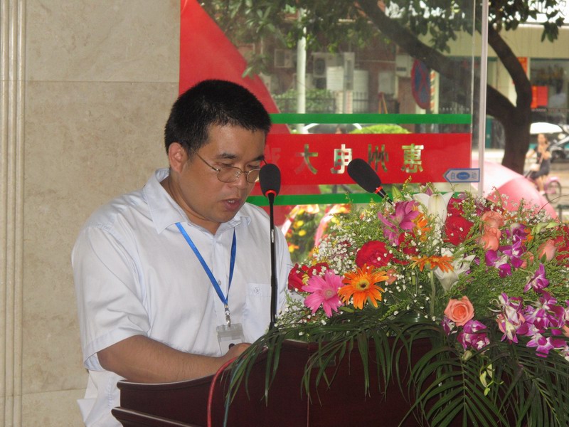 市电大校长、党总支书记吴汉朋致欢迎辞,他代表惠州电大全体师生对前来参加我校新教学大楼和服务大厅启用仪式的各位领导、嘉宾表示热烈的欢迎和衷心的感谢!吴校长介绍了新教学大楼和服务大厅的情况,新教学大楼及配套地下停车场主体在2010年底顺利完工,各项配套工程于近日全面完成,成为惠州市直学校和我省地市级电大的标志性单体建筑之一,地下停车场上下可容纳300来个车位,同时启用的