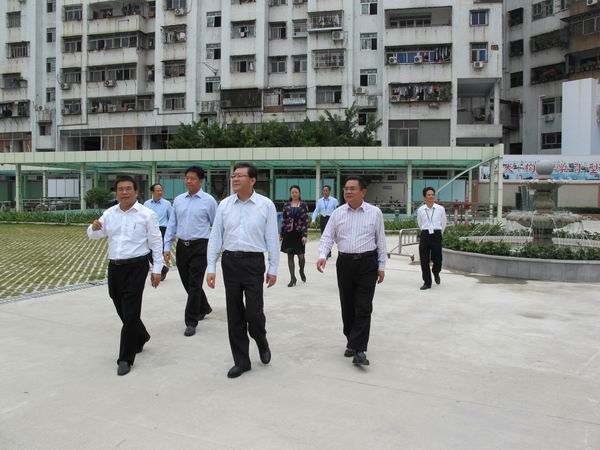 魏中林、梅醒斌一行参观了惠州电大校园、新教学大楼、服务大厅、多功能报告厅、教工之家、文体中心等,并与服务大厅工作人员亲切交谈,对惠州电大的崭新面貌给予了高度评价。
