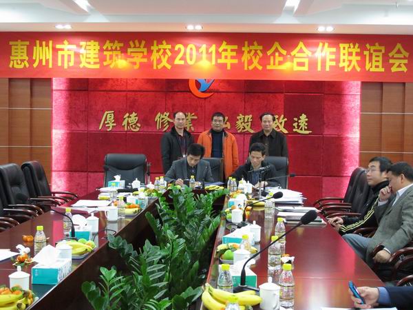 围绕如何加强校企合作事宜,各有关单位代表踊跃发言。惠州市建筑工程总公司、惠州市第一建筑工程有限公司、东莞市景鸿装饰工程有限公司、惠州市城乡建筑工程有限公司、广东金宝集团有限公司、惠州市国兆实业发展有限公司等有关企业领导先后作了发言。其他代表也积极建言献策,向学校提出了很好的建议。