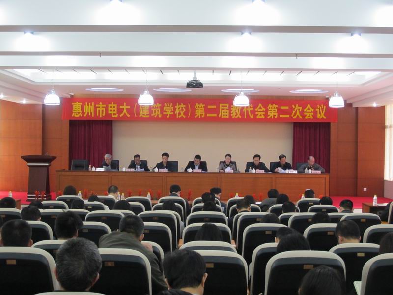 吴校长在报告中指出,2011年,我校以第二届教代会第一次会议工作报告提出的“坚持科学发展,加快转型升级,促进我市电大事业再上新台阶”为工作主线,进一步科学定位,规范管理,狠抓内涵建设,提高教育质量,扩展办学空间,完善服务功能,多项工作在原有基础上取得了新突破,呈现出许多工作亮点:电大和附属中专招生实现“比翼双飞”的大好局面;基础设施建设迈上一个大台阶,校园面貌焕然一新;“两大德政工程”(即惠州市“培养村官大学生工程”、“社区干部素质提升工程”)和免费培养“百名环卫工人大学生”引起了强烈反响;市编办正式批复成立惠州市社区教育指导服务中心并落户惠州电大;初步建立起了现代学校制度,成功创建全国示范性基层电大,在全省率先步入办学转型升级轨道;大投入、增创收,使学校固定资产倍增有余;鼎力协办了2011年广东电大系统校领导会议,充分展现了惠州电大务实进取的新形象……。