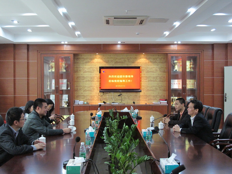 4月11日上午,团市委副调研员庄宇军、学少部负责人等一行四人莅临我校检查指导工作,在综合楼11楼会议室听取了我校的团建工作汇报。陈玲明副校长和团委负责人参加了座谈会。