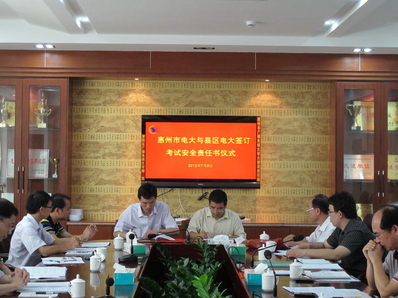 会上,市电大教务科和招生办负责人分别就2012-2013年度第一学期开放教育考试工作和2013春季招生工作进行小结,并对本学期期末考试工作要求和秋季招生安排进行布置说明。市电大与各县(区)电大签订了考试安全责任书。惠阳、博罗、惠东、龙门四个县(区)电大领导汇报了近期本校招生、考试考务、教学管理、基础建设等工作情况,并对下一阶段招生与教务等工作展开积极研讨,为惠州电大系统发展建言献策。