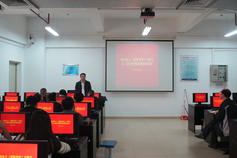 为进一步完善实习生就业跟踪管理的相关制度,推进办公自动化系统的应用,3月19号,惠州市建筑学校(市电大中职部)在综合楼403机房进行了实习就业跟踪管理系统软件专题培训。学校分管领导、各科室(系部)要负责人,班主任及指导老师近四十人参加此次培训。