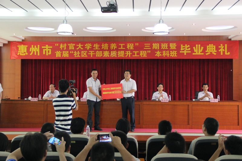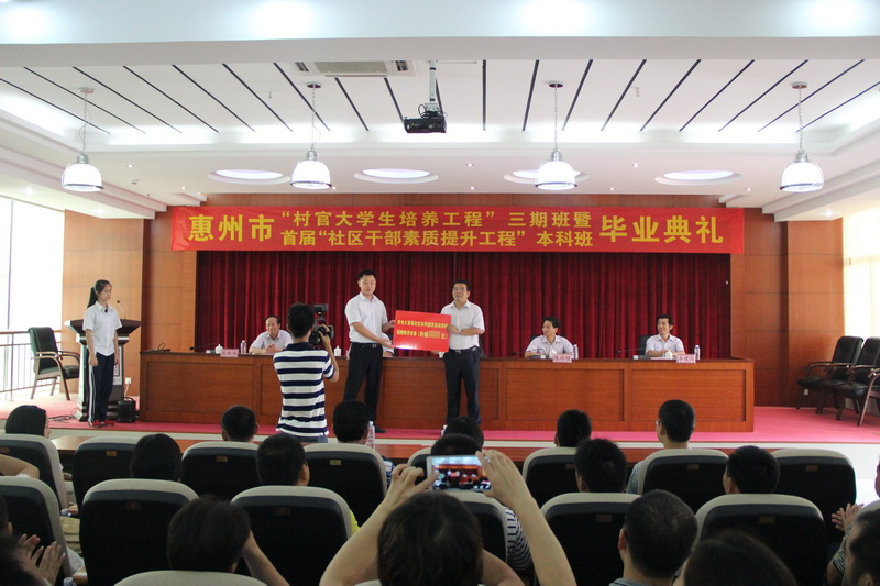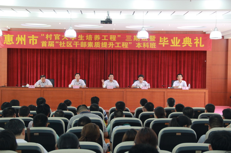 市电大校长、党委书记吴汉朋总结分享了“培养村官大学生工程”和“社区干部素质提升工程”开展以来取得的丰硕成果,认为在上级领导的高度重视、各级组织部门、市县电大的紧密配合下,这“两项工程”进展顺利,效果凸显,为农村、社区改革发展培养了一批扎根基层的实用人才,涌现了像党的十八大代表陈杏芬等一批优秀学员,有效提升了村、社区干部的整体素质,推动了农村、社区的科学发展,改善了农村、社区的风气面貌,得到了省委、市委的高度肯定,在社会上引起了广泛关注,受到新华社、人民日报、中央电视台等19家中央和省级媒体的集中报道,并在全省范围内得到推广,其中惠州“培养村官大学生工程”被广东省委誉为培养基层干部的“惠州模式”。