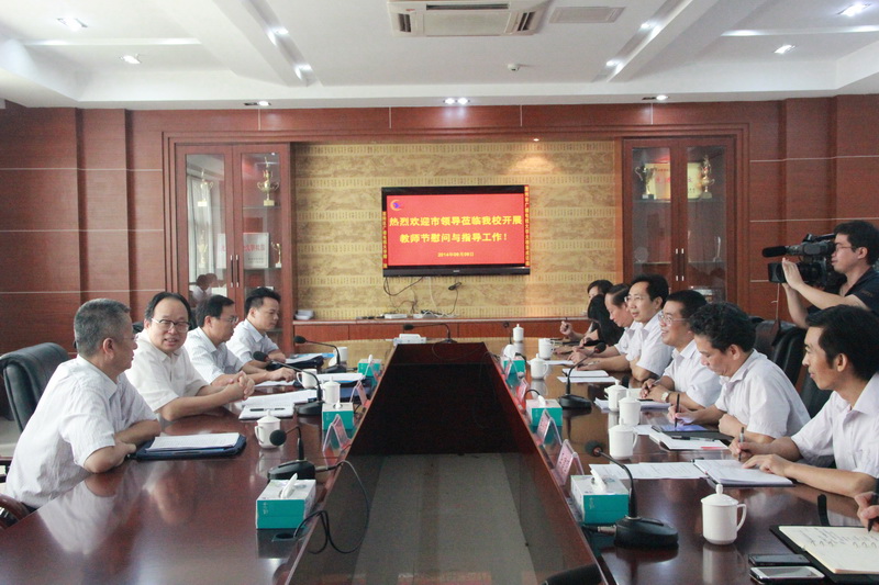 陈训廷副书记代表市委市政府向学校教职工表达节日的问候,对电大师生为惠州教育事业作出的突出贡献表示感谢。吴汉朋校长代表学校全体教职工对市领导莅临我校慰问表示衷心感谢,并汇报了学校的办学情况,惠州电大在市委市政府、市教育局等有关部门的支持关心下,各项工作取得了显著成效,走在了全省同级电大前列:一是加强了基础设施建设,办学条件得到较大改善;二是加强了招生工作,稳定了适度的办学规模;三是加强了人才与师德建设,逐步锻造了一支团结干事、战斗力强的教职工队伍;四是加强了服务功能,办学转型升级走在全国基层电大前列;五是加强了党建工作,扎实开展了党的群众路线教育实践活动;六是加强了改革创新,推出了“六大事业部管理”模式。