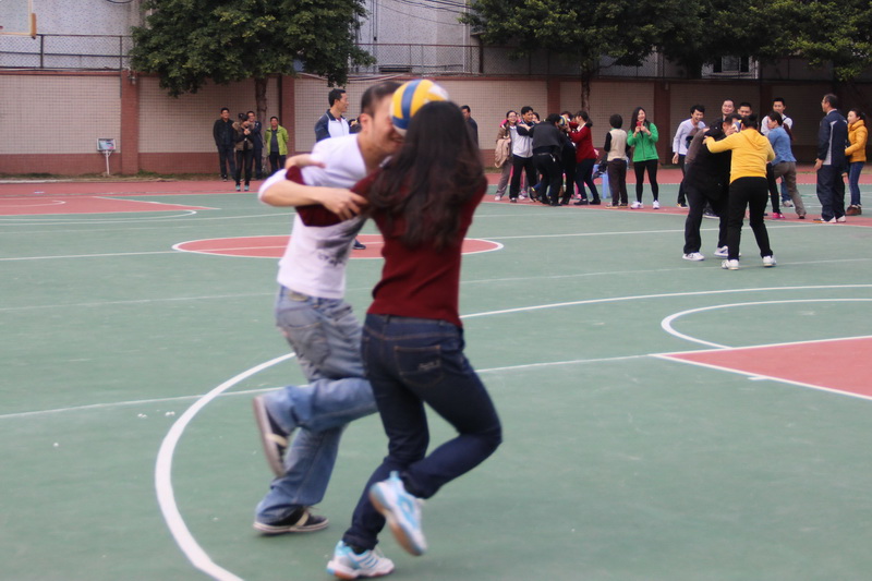 本届趣味运动会共设有“四人五足”、“同舟共济”、“龙凤戏珠”、拔河等四个团体项目。“四人五足”中,由四人组成的队伍手扶着手,肩并着肩,共同奔赴终点,“龙凤戏珠”更是考验着参赛选手们的个人身体素质和彼此之间的默契。当拔河比赛的哨声响起,队员们口中一起高呼着“一二,一二”,双手紧握长绳,憋足了劲拼命后拉,学校领导也在队伍旁边助阵加油,充分地体现了既竞争又合作的精神,场上精彩迭起,场下笑语不断,充满了和谐友爱的气氛。