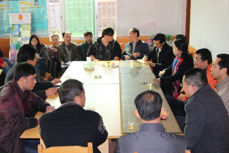 慰问前,惠州电大校长、党委书记吴汉朋在茶径村村委会主持召开了简短的座谈会,学校领导、汝湖镇联络该村的领导、茶径村两委干部、学校结对扶贫小组代表参加了座谈,吴汉朋传达了市委市政府有关做好扶贫慰问工作的文件精神,对下来的结对扶贫工作提出了具体目标要求,要求学校结对扶贫小组与个人要认真负责做好下一阶段的扶贫双到工作,帮助困难户发展经济,增加收入,脱贫致富。村委负责人介绍了该村近年的生产与经济发展情况,并对学校的近年来包括2014年夏季给予抗旱资金在内的各项帮扶表示感谢。目前,该村已有一些困难户进行泥砖房改造,生活水平和居住条件逐步得到改善。汝湖镇联络该村的领导也就有关协调推进镇村的发展情况作了发言。