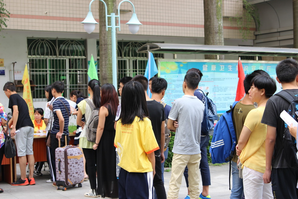学生会、志愿者更是穿梭在报名现场的各个角落,帮助新生搬运行李,带领新生报名注册,并为他们提供各项咨询服务,解决新生的各种疑惑和遇到的问题。志愿者们热情的笑脸,亲切的问候,贴心的服务,让新学子们在跨入学校的第一天就感受到学校大家庭的温暖。特别是炎炎夏日,班主任以及学生会、志愿者们依然坚守岗位,热心工作,赢得新生及家长的交口点赞。
