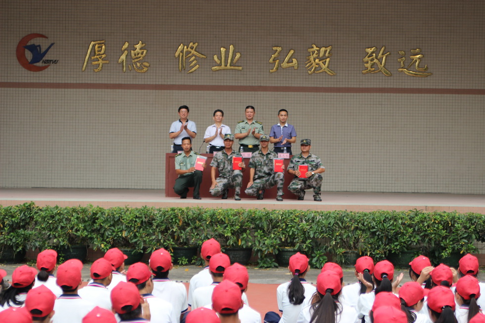 下午3:00,大会正式拉开序幕。陈玲明校长在总教官侯铭的陪同下检阅了军训方队,各班同学排着整齐的方阵、迈着坚定的步伐,喊着嘹亮的口号,昂首挺胸通过主席台,向大家展现了自己在5天军训中所取得的优异成绩,展现了热情饱满、积极向上的精神面貌。