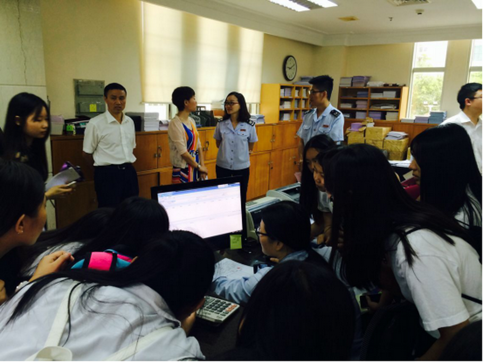 大亚湾地方税务局选派业务骨干为同学们演示了地税金税操作系统,向同学们讲解了受理企业纳税申报、登记、注销以及稽查等操作性强的工作流程,并与同学们进行了座谈。通过理论与实操的相互结合,同学们更加系统地掌握了所学专业知识,加强了对会计工作岗位的认知和认同;培养了对所学专业的兴趣和热情;激发了学习专业理论知识的积极性。这个好的开始,为学生走向社会工作岗位积淀实践环节的能量,同时也为中职会计实践教学改革积累了经验。