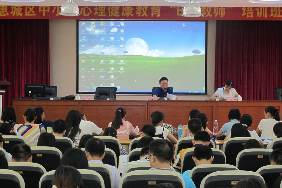 在开班仪式上,惠城区教育局黄云华副局长指出:随着经济高速发展,社会竞争日益激烈,人们身居其中,担负的心理压力也越来越大,教师也好,学生也好,都不例外。教师的心理健康水平和对学生的心理沟通技巧直接影响育人的效果,通过开展心理健康教育培训,让教师们学习更多心理知识,掌握一定的辅导技术,对开展德育工作非常有帮助。