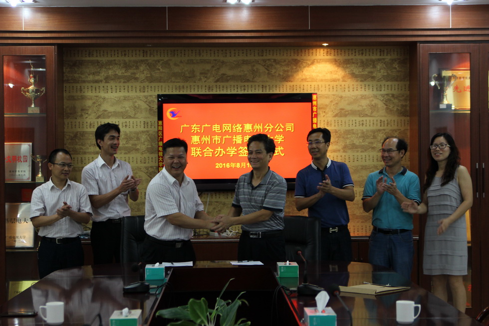 8月16日,惠州市电大与广东广电网络惠州分公司联合办学签约仪式暨校企合作座谈会在惠州电大举行。广东广电网络惠州分公司党委书记、副总经理李观雄,惠州电大党委书记、校长温金龙,校企双方有关部门负责人参加了此次活动。