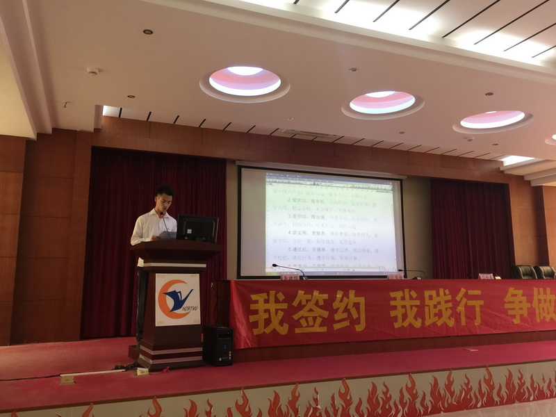 立承诺,践公约。3月20日下午,惠州市建筑学校在多功能学术报告厅举行《中等职业学校学生公约》签名承诺仪式,近300名学生代表在宣读领誓人的带领下立下承诺,并在《中等职业学校学生公约》签字墙上郑重的签下自己的名字。